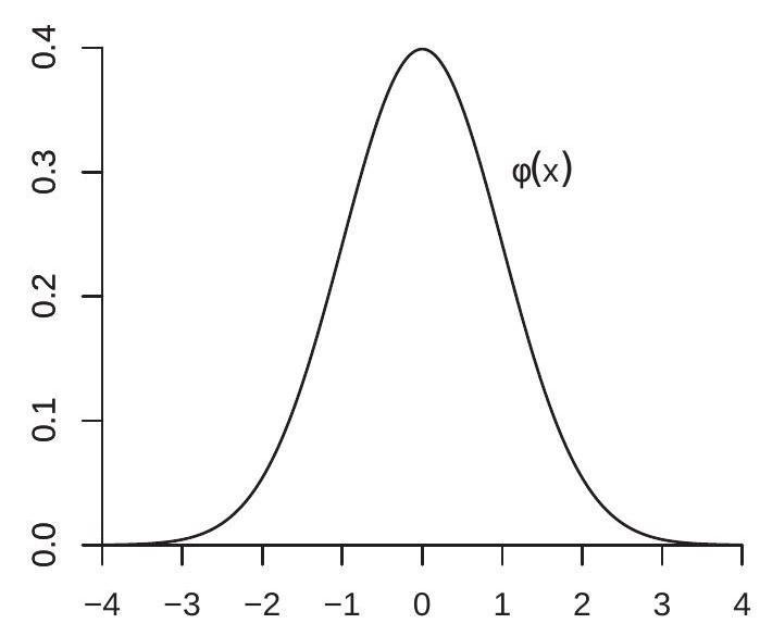 \[ \phi(x)=\frac{1}{\sqrt{2 \pi}} \exp \left(-\frac{x^{2}}{2}\right), \quad-\infty<x<\infty . \]