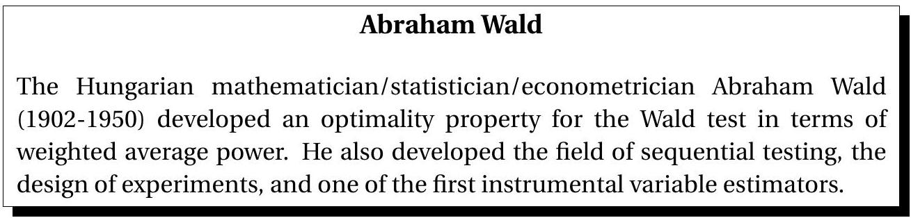 is the t-statistic from (7.33), θ^ is a point estimator, and s(θ^) its standard error. T is an appropriate statistic when testing hypotheses on individual coefficients or real-valued parameters θ=h(β) and θ0 is the hypothesized value. Quite typically θ0=0, as interest focuses on whether or not a coefficient equals zero, but this is not the only possibility. For example, interest may focus on whether an elasticity θ equals 1 , in which case we may wish to test H0:θ=1.