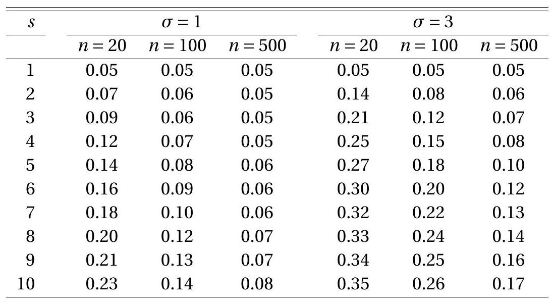 2. Suppose the number of simulation replications were B=1000 yet the estimated size is still 7. Does your answer change?
