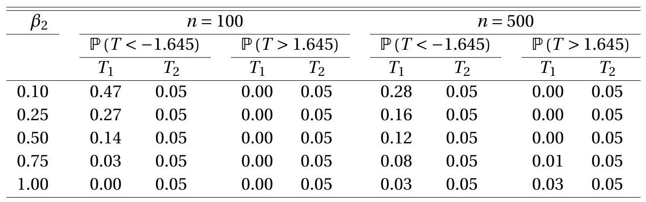 3. From the 1000 replications estimate P[Tβ>1.645] and P[Tθ>1.645]. What does asymptotic theory predict these probabilities should be in large samples? What do your simulation results indicate?