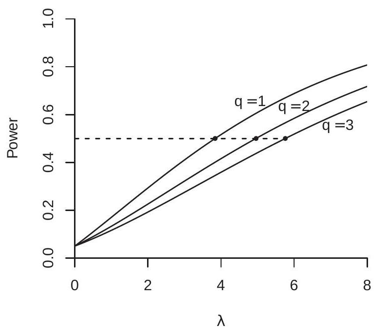 Exercise 9.4 Let W be a Wald statistic for M0:θ=0 versus M1:θ0, where θ is q×1. Since Wdχq2 under H0, someone suggests the test “Reject H0 if W<c1 or W>c2, where c1 is the α/2 quantile of χq2 and c2 is the 1α/2 quantile of χq2.