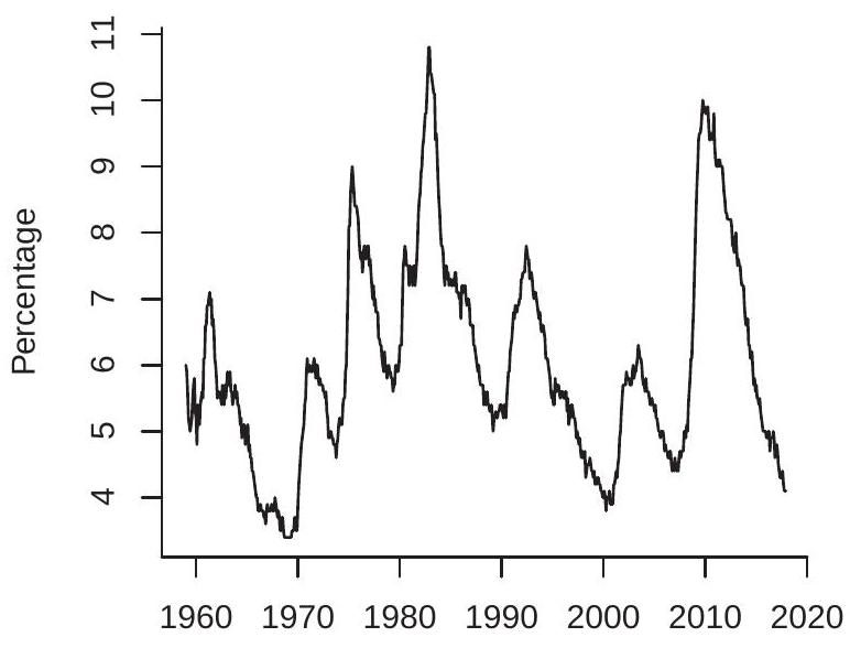 Exercise 14.20 Take the monthly series unrate (unemployment rate) from FRED-MD.