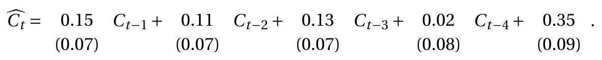 Estimate an AR(4) model. Report using heteroskedastic-consistent standard errors.