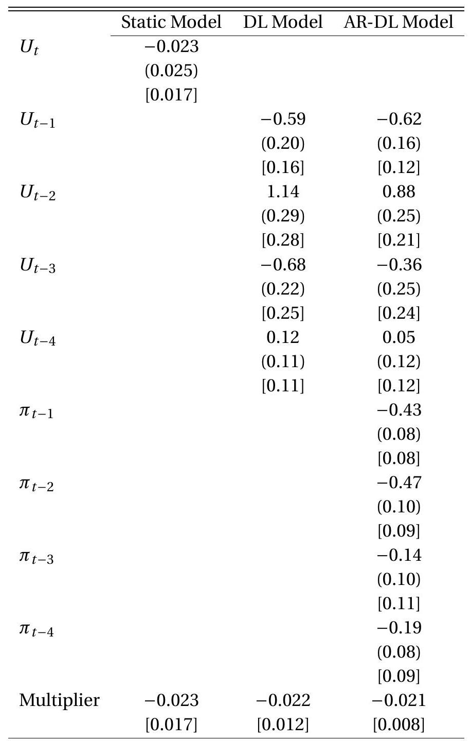 Estimate a distributed lag regression of the unemployment rate on initial claims. Use lags 1 through 4. Which standard error method is appropriate?