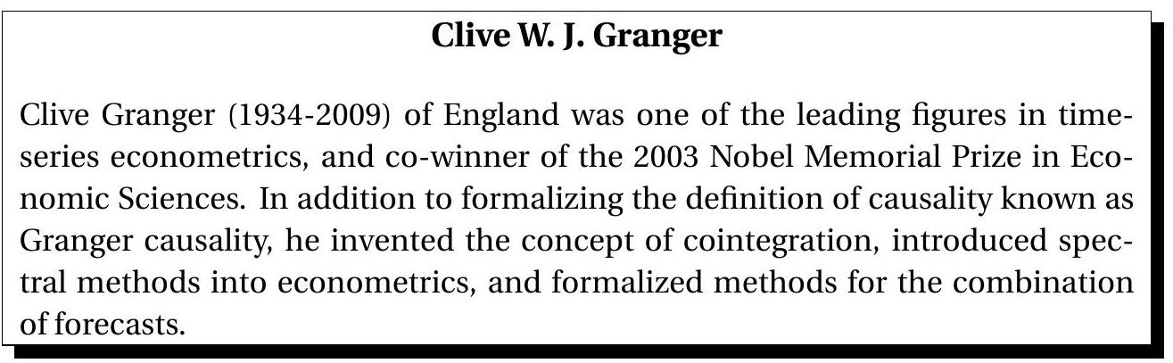 There are many excellent textbooks for time series analysis. The encyclopedic standard is Hamilton (1994). Others include Harvey (1990), Tong (1990), Brockwell and Davis (1991), Fan and Yao (2003), Lütkepohl (2005), Enders (2014), and Kilian and Lütkepohl (2017). For textbooks on the related subject of forecasting see Granger and Newbold (1986), Granger (1989), and Elliott and Timmermann (2016).