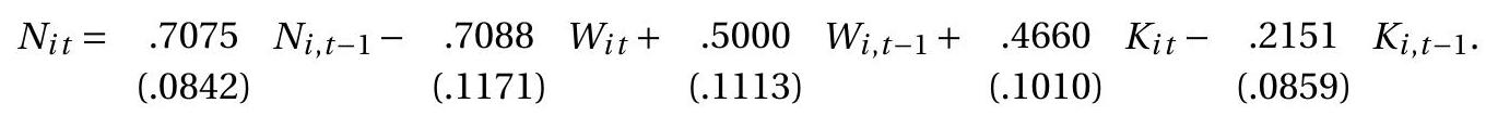 Exercise 17.16 This exercise uses the same dataset as the previous question. Blundell and Bond (1998) estimated a dynamic panel regression of log employment on log real wages and log capital . The following specification used the Arellano-Bond one-step estimator, treating and as predetermined.