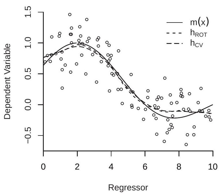 Smoothing bias is a natural by-product of nonparametric estimation of nonlinear functions. It can only be reduced by using a small bandwidth. As we see in the following section this will result in high estimation variance.