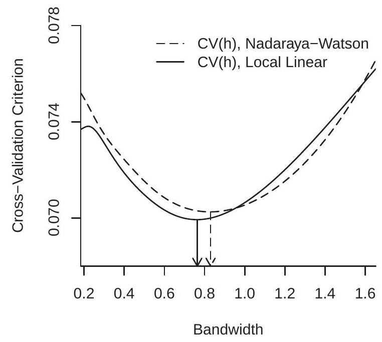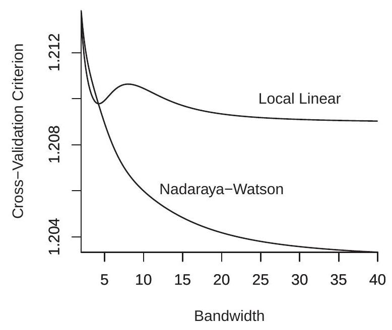 This interpretation suggests that we can construct alternative nonparametric estimators of by alternative local approximations. Many such local approximations are possible. A popular choice is the Local Linear (LL) approximation. Instead of the approximation , LL uses the linear approximation . Thus