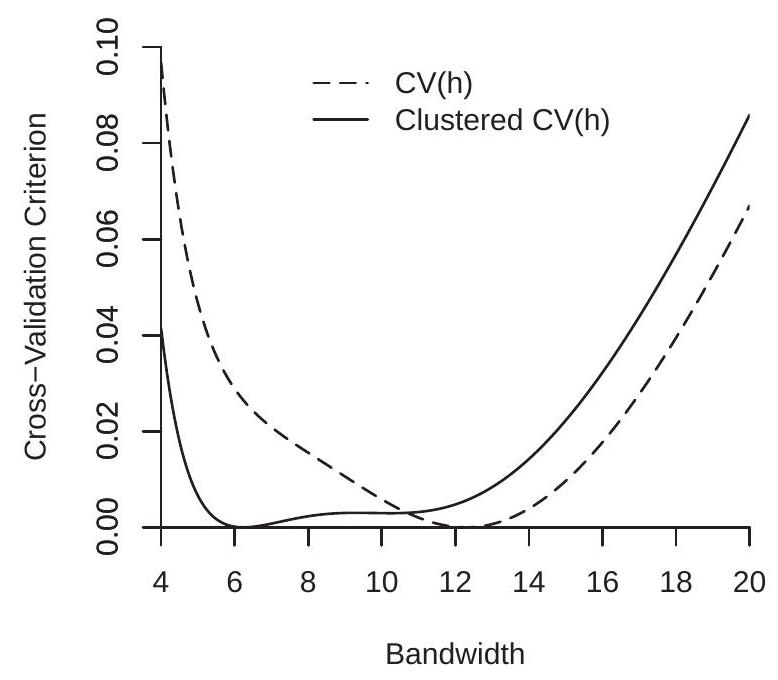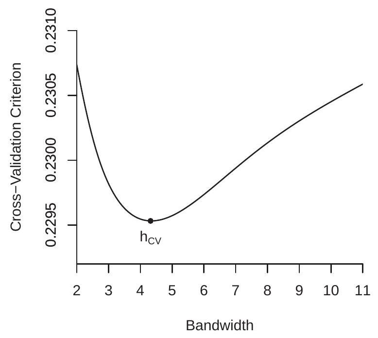 In multiple regressor kernel regression cross-validation remains a recommended method for bandwidth selection. The leave-one-out residuals and cross-validation criterion are defined identically as in the single regressor case. The only difference is that now the CV criterion is a function over the bandwidths . This means that numerical minimization needs to be done more efficiently than by a simple grid search.