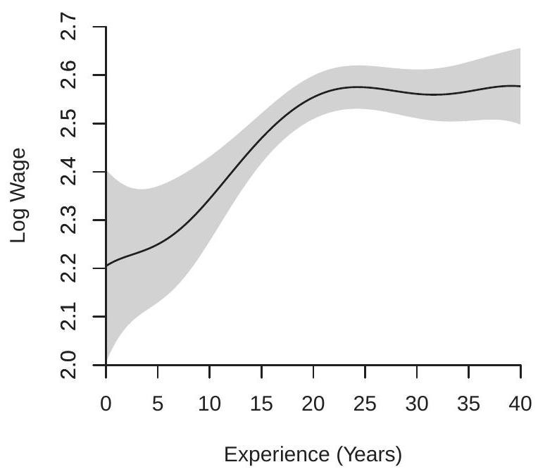 Exercise 19.8 Take the cps09mar dataset and the subsample of individuals with education=20 (professional degree or doctorate), with experience between 0 and 40 years.