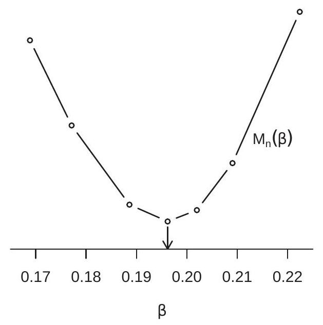 \[ \widehat{\beta}=\underset{\beta}{\operatorname{argmin}} M_{n}(\beta) . \]