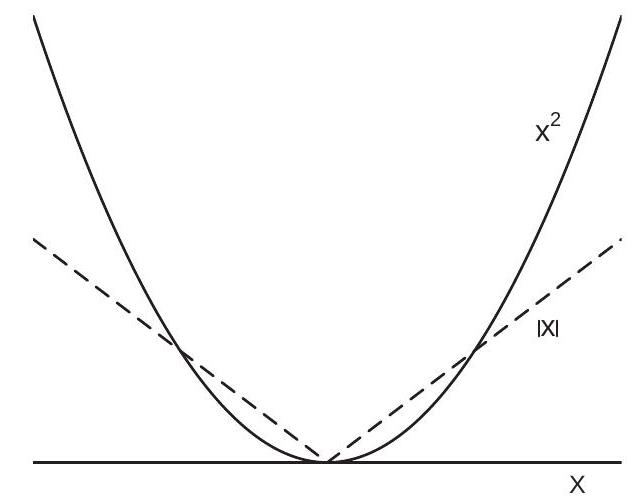 The proof is in Section \(24.16\). Expression (24.6) is foundational. It shows that the median regression coefficient \(\beta\) minimizes the expected absolute difference between \(Y\) and the predicted value \(X^{\prime} \beta\). This is foundational as it expresses the coefficient as a function of the probability distribution. This result is a direct analog of the property that the mean regression coefficient minimizes the expected squared loss. The difference between the two is the loss function - the measure of the magnitude of a prediction error. To visualize, Figure 24.1 (a) displays the two loss functions. Comparing the two, squared loss puts small penalty on small errors yet large penalty on large errors. Both are symmetric and so treat positive and negative errors identically.