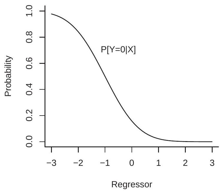 The censoring process is depicted in Figure 27.1(b). The latent variable has a normal density centered at . The portion for is maintained while the portion for is transformed to a point mass at zero. The location of the density and the degree of censoring are controlled by the conditional mean . As moves to the right the amount of censoring is decreased. As moves to the left the amount of censoring is increased.